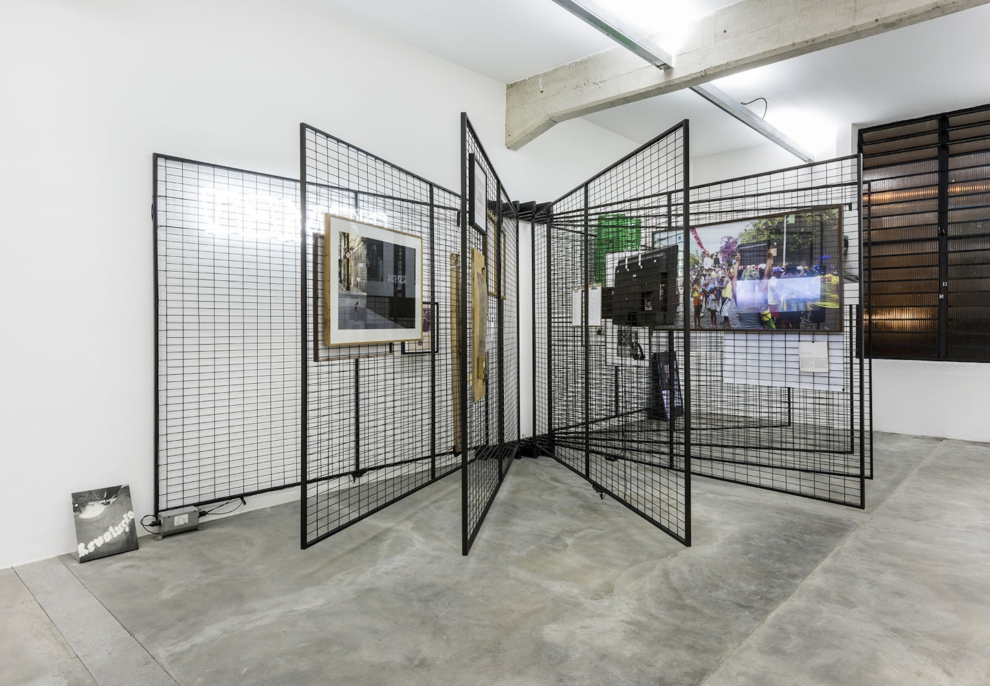 Designed for a device resembling a giant book made of gridwall panels, this project comprises works by two generations: from 1968 through the early 1980s, and from 2013 through 2017. In revisiting documents, reviewing narratives, and proposing new dialogues, it seeks to address issues of freedom, repression, collective ecstasy, aesthetic trance, institutional collapse, and crisis management.